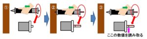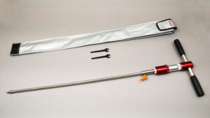 土壌硬度計は土壌面に対して垂直にコーンを押し込み、土壌の硬さに応じて目盛りが出でくる機器です。